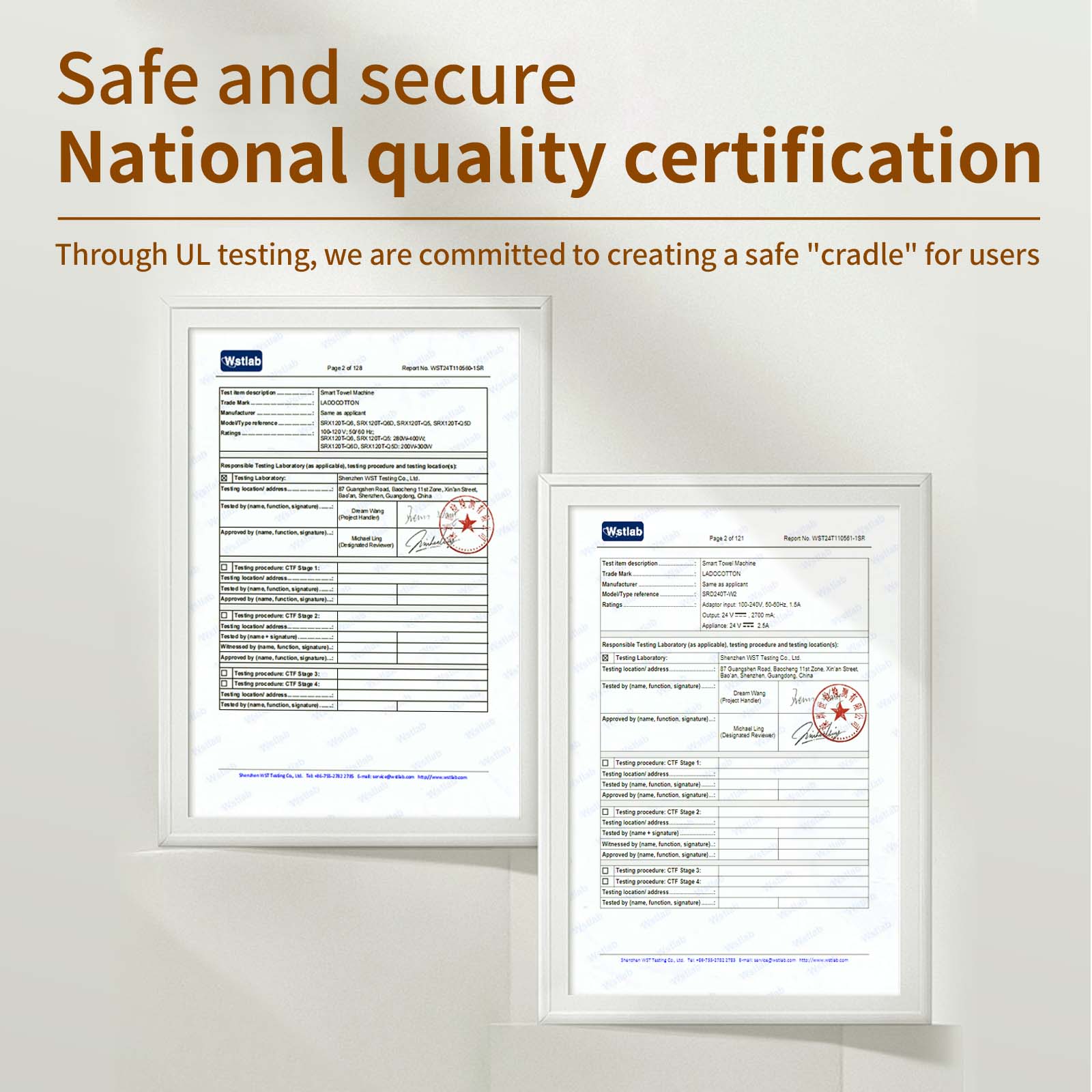 The W2J machine uses LADOCOTTON cotton soft towels made from 100% natural plant fibers, which are safe, additive-free, and have passed authoritative tests for food contact and skin contact standards. They are suitable for sensitive groups, including infants and pregnant women.
